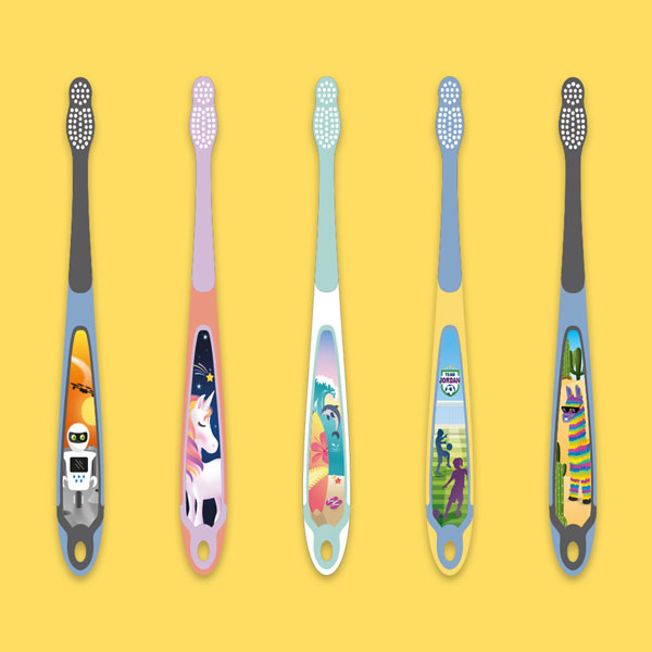 Universet ble til og videreført på flere flater med muligheter for miks og match; på tannkrem, bakkort til tannbørster, dekaler trykket på tannbørstene og travel caps.