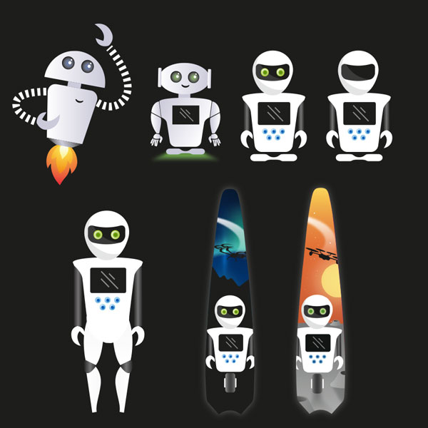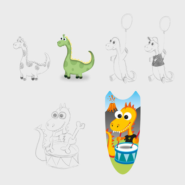 Vi startet med håndtegnede skisser og hadde tett dialog med kunden i prosessen. Etter hvert som ideene for motiv ble landet ble illustrasjonene digitalisert. Illustrasjonene ble vektorisert og designet i miljø og med riktig fargevalg for konseptene.